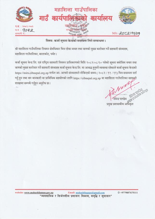 » कर्जा सूचना केन्द्रको सदस्यता लिने सम्वन्धि सूचना ।