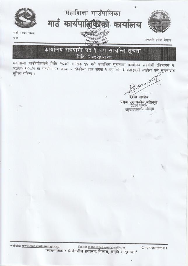 » कार्यालय सहयोगी पद संख्या थप सम्वन्धि सूचना ।