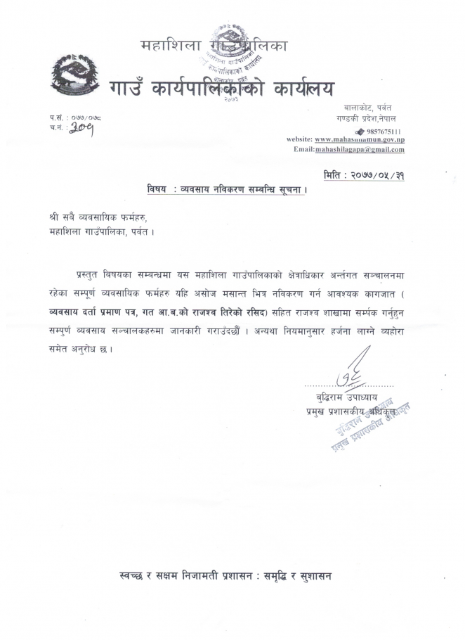» व्यवसाय नविकरण सम्बन्धि सूचना ।